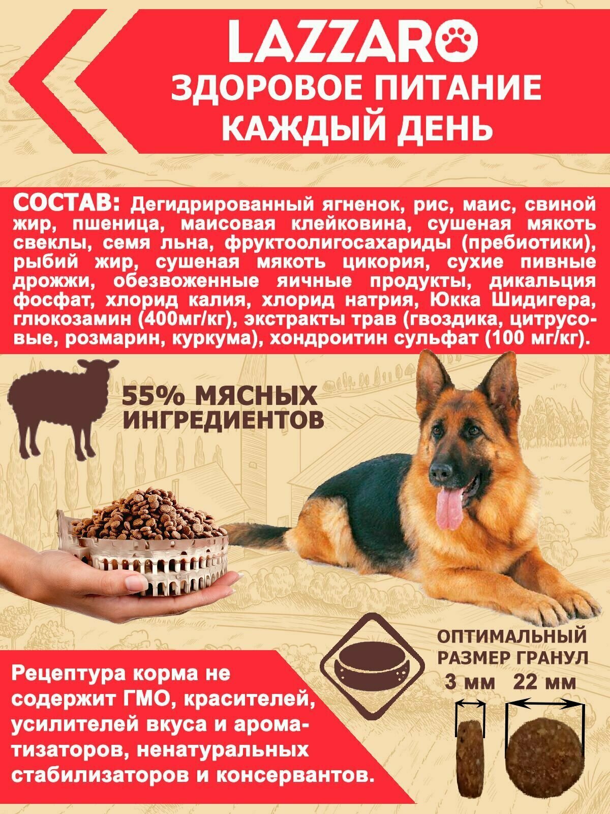 Отзывы на Корм LAZZARO сухой полнорационный с Ягненком и рисом для собак крупных пород 12 кг