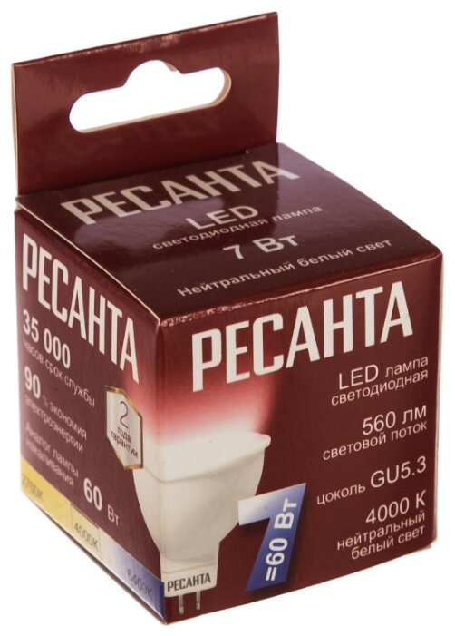 Отзывы на Рефлекторная светодиодная лампа Ресанта LL-R-MR16-7W-230-4K-GU5.3