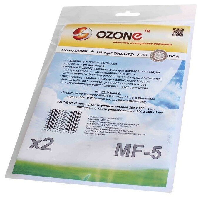 Фильтр для пылесоса Ozone MF-5 информация: