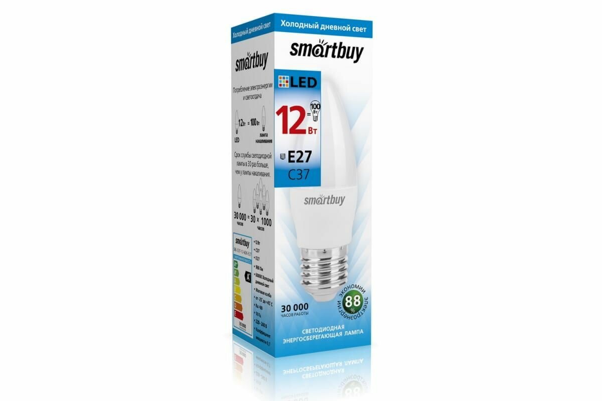 Smartbuy свеча C37 E27 12W (960 lm) 6000К 6К 37х105 матовая пластик SBL-C37-12-60K-E27 (арт. 759122) информация: