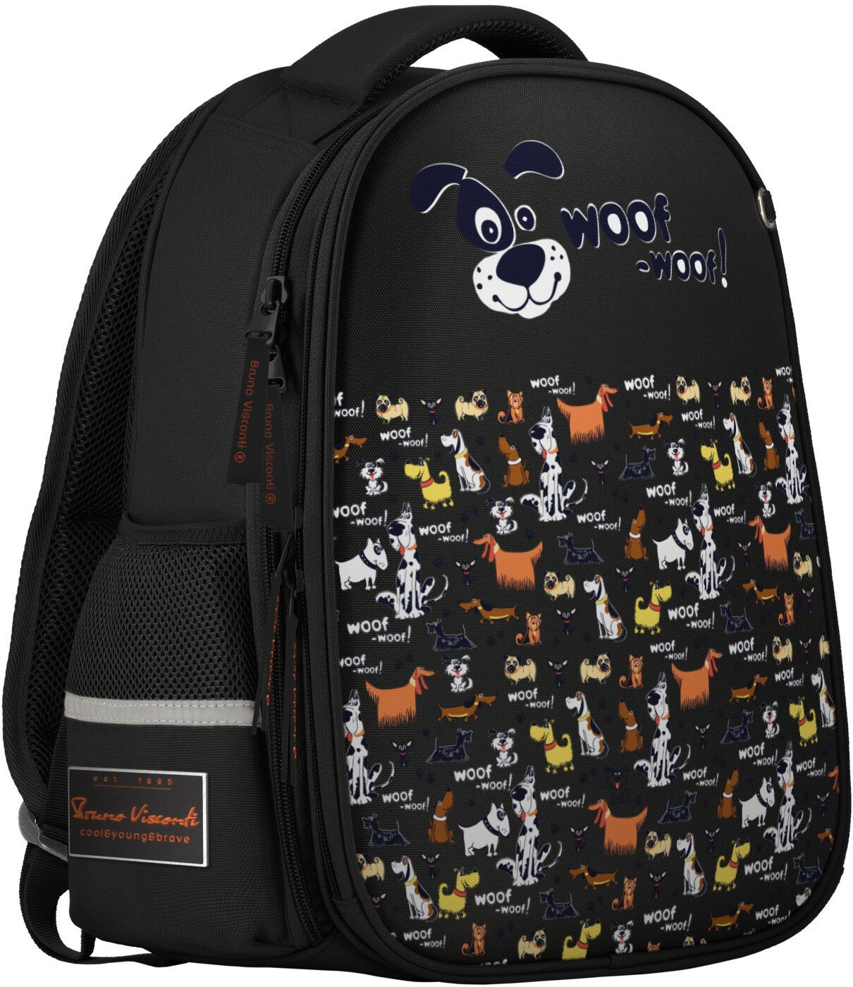 Рюкзак BrunoVisconti, облегченная капсула, черный с эргономичной спинкой, «собачки.WOOF», Арт. 12-001-048/01