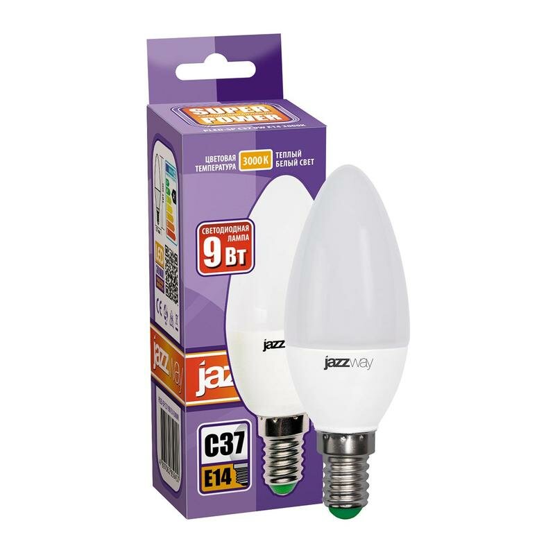 Светодиодная лампа Jazzway PLED-SP E14, C37, 9 Вт, 820ЛМ, 3000K информация: