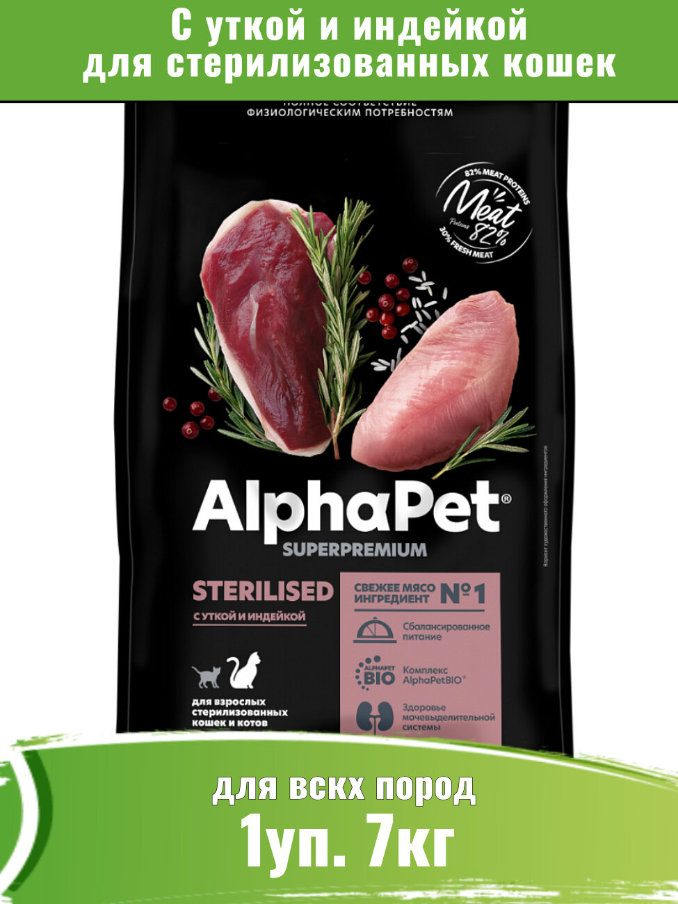 Сухой корм AlphaPet Superpremium для стерилизованных кошек,с уткой и индейкой 7 кг информация: