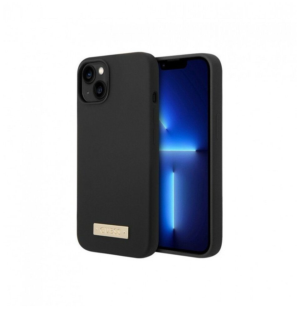 Guess для iPhone 14 Plus чехол MagSafe Liquid silicone Plate metal logo Hard Black информация: