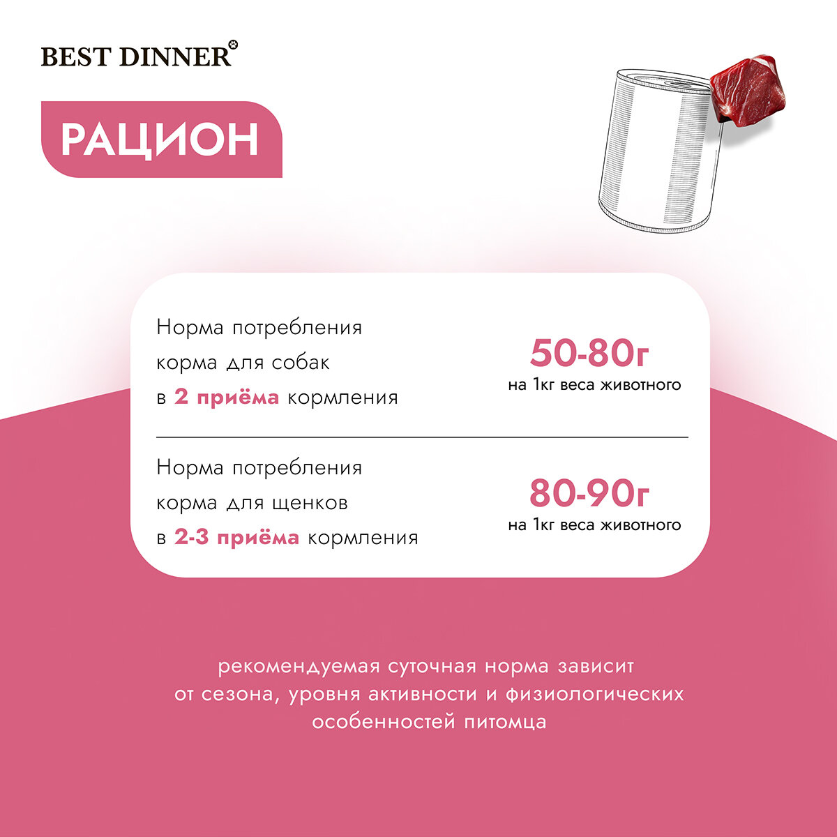 | Возраст животного | взрослые (1-6 лет) / пожилые (7+) / щенки (до 1 года) |