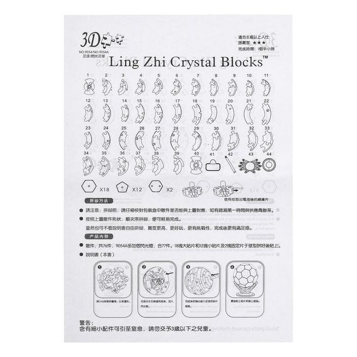 --- Пазл 3D кристаллический "Мяч", 77 деталей, световые эффекты, работает от батареек, микс информация: