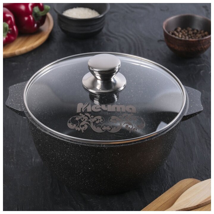 10 цен на Кастрюля"Гранит", 4 л, стеклянная крышка, антипригарное покрытие, цвет черный