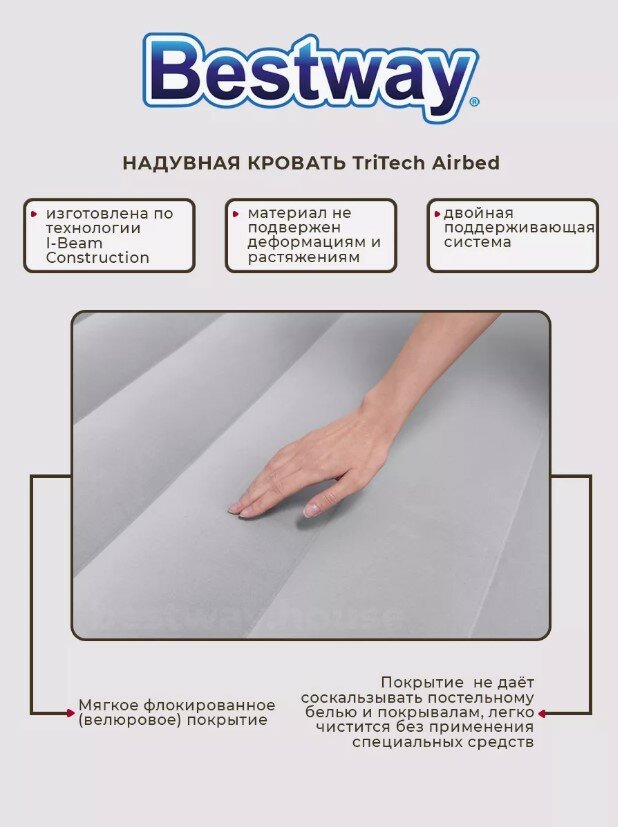 Надувной матрас Bestwey 2-х спальный 2.03х1.83х22м 67004 с подушками и насосом. 3 587 ₽