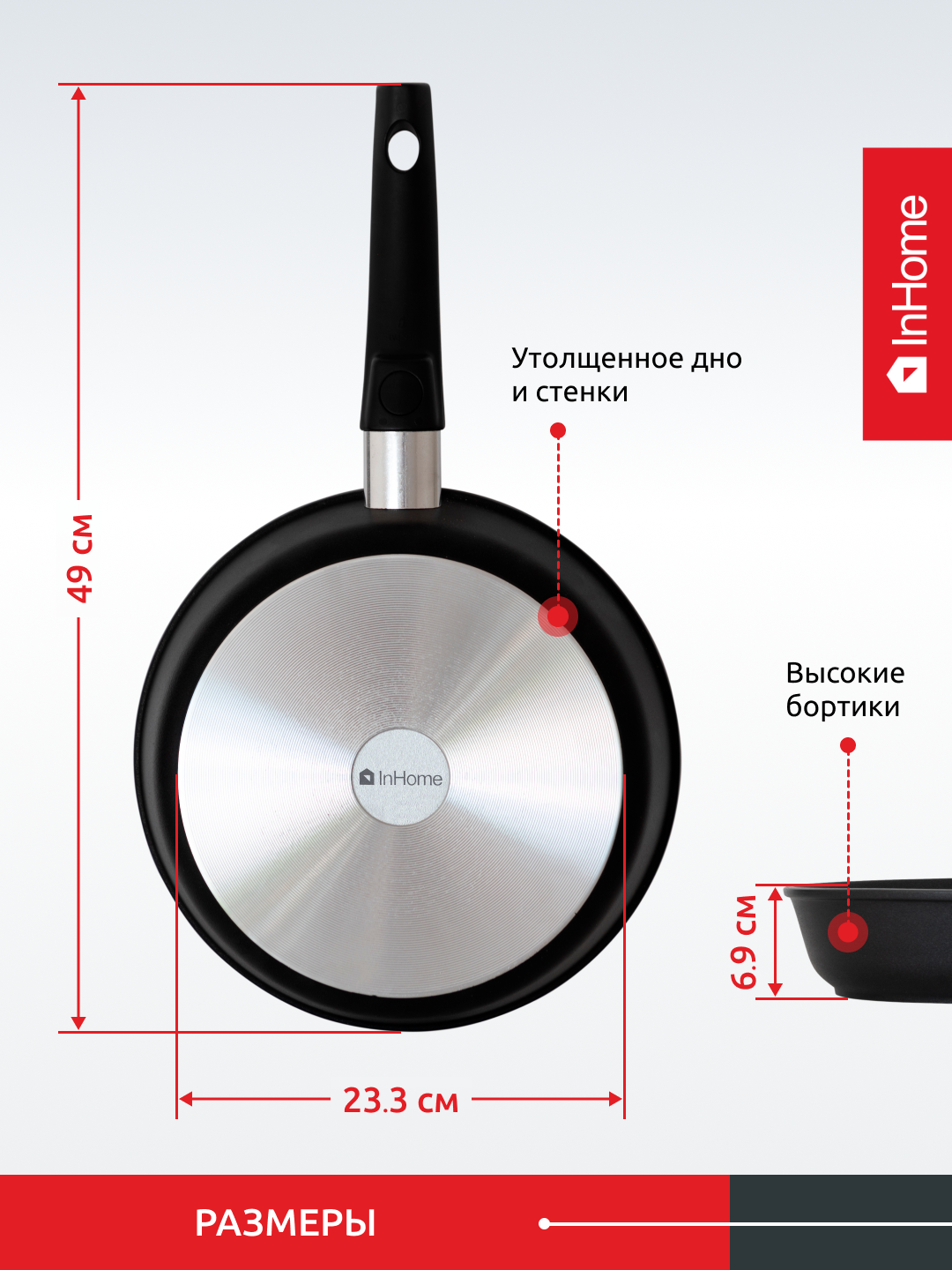 Сковорода InHome 28 см + съемная ручка, "Professional Style" черный IVFP/028 . информация: