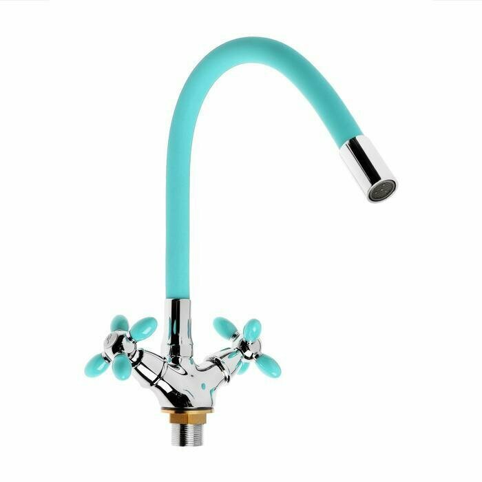 Смеситель для кухни Accoona A4882K-1, двухвентильный, с гибким изливом, голубой