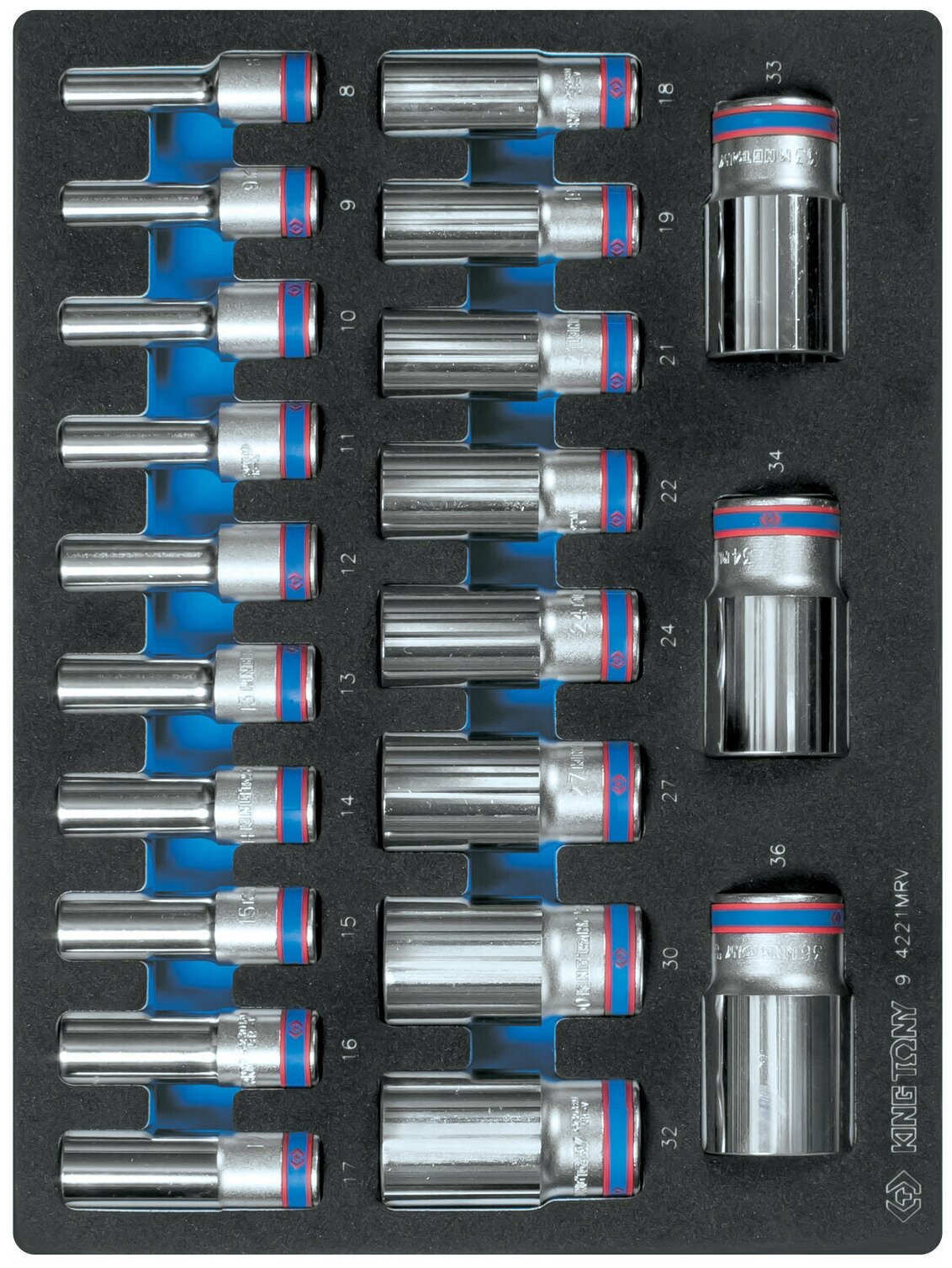 9-9003MRV01 KING TONY Набор торцевых головок 1/4"&3/8"&1/2" с принадлежностями, ложемент, 103 предмета 9-9003MRV