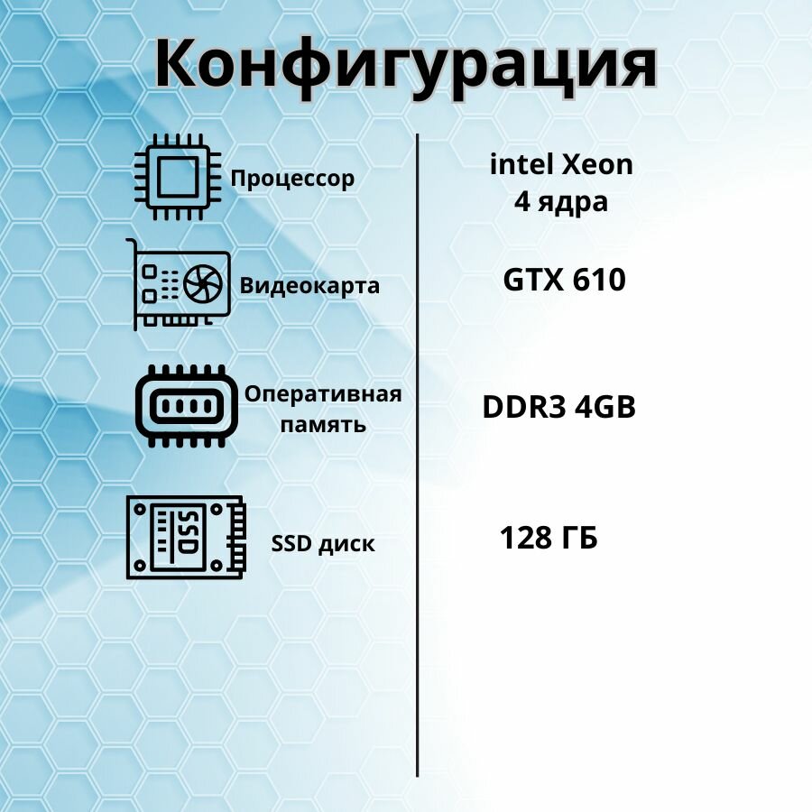 Компьютер игровой Intel i5/GTX-650/8GB/SSD-256G/Монитор 22' информация:
