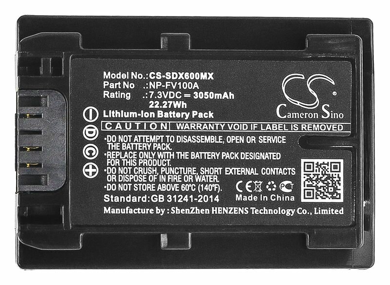 Аккумулятор CameronSino CS-SDX600MX для видеокамеры Sony FDR-AX33, FDR-AX40, FDR-AX45 (NP-FV100A) 3050mAh информация: