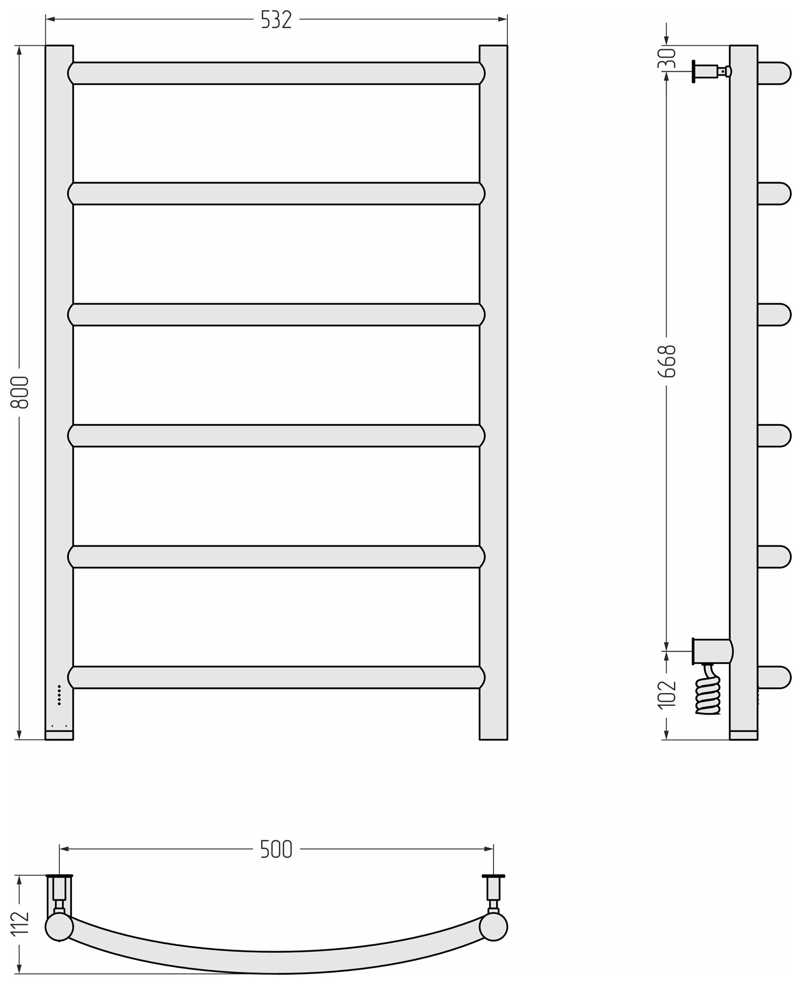 TERMINUS Полотенцесушитель электрический Terminus Хендрикс П6 500x596, ТЭН HT-1 300W, левый/правый