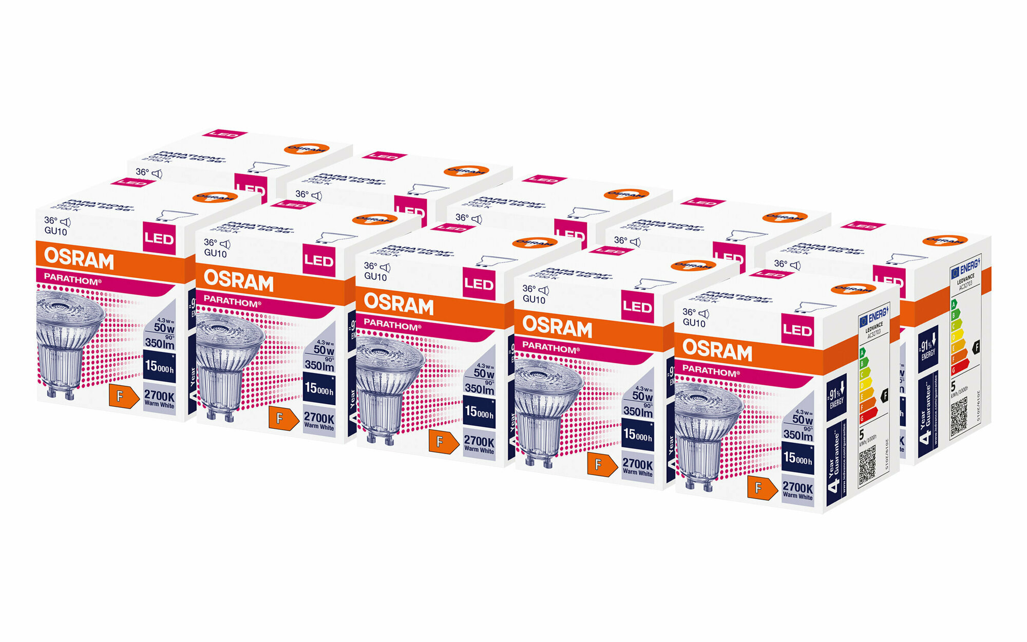 Упаковка светодиодных ламп 10 шт. OSRAM 4058075582064, GX53, 10 Вт, GX