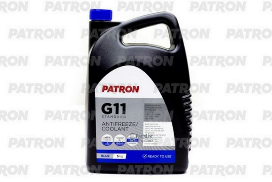 PATRON PCF3005 Антифриз 5кг брутто (4.4л) синий готовый: G11, TL 774-C, G011A8CA1, 83512355290, N600690, MAN 324 NF, MB 325.0, B0400240, 6901599, 1286083