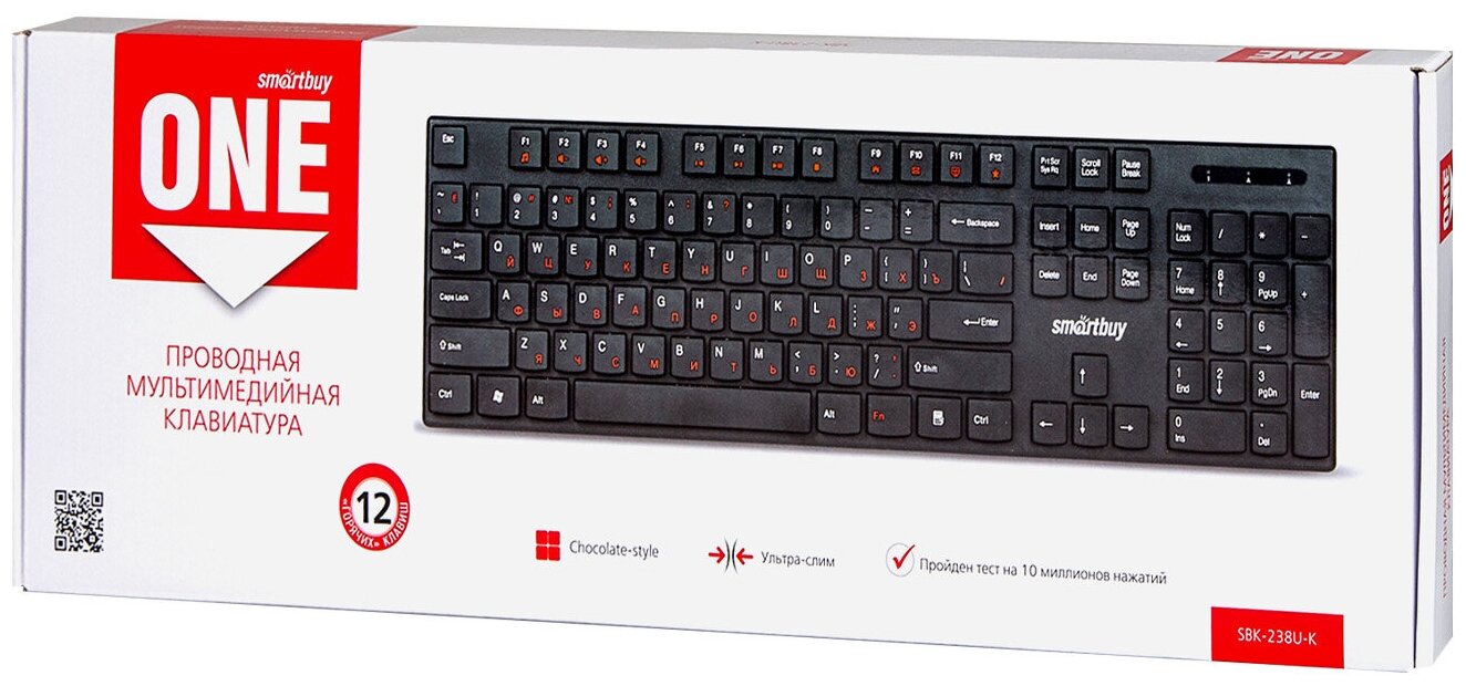 Клавиатура проводная Smartbuy мультимедийная 238 ONE USB черная (SBK-238U-K)/20 информация: