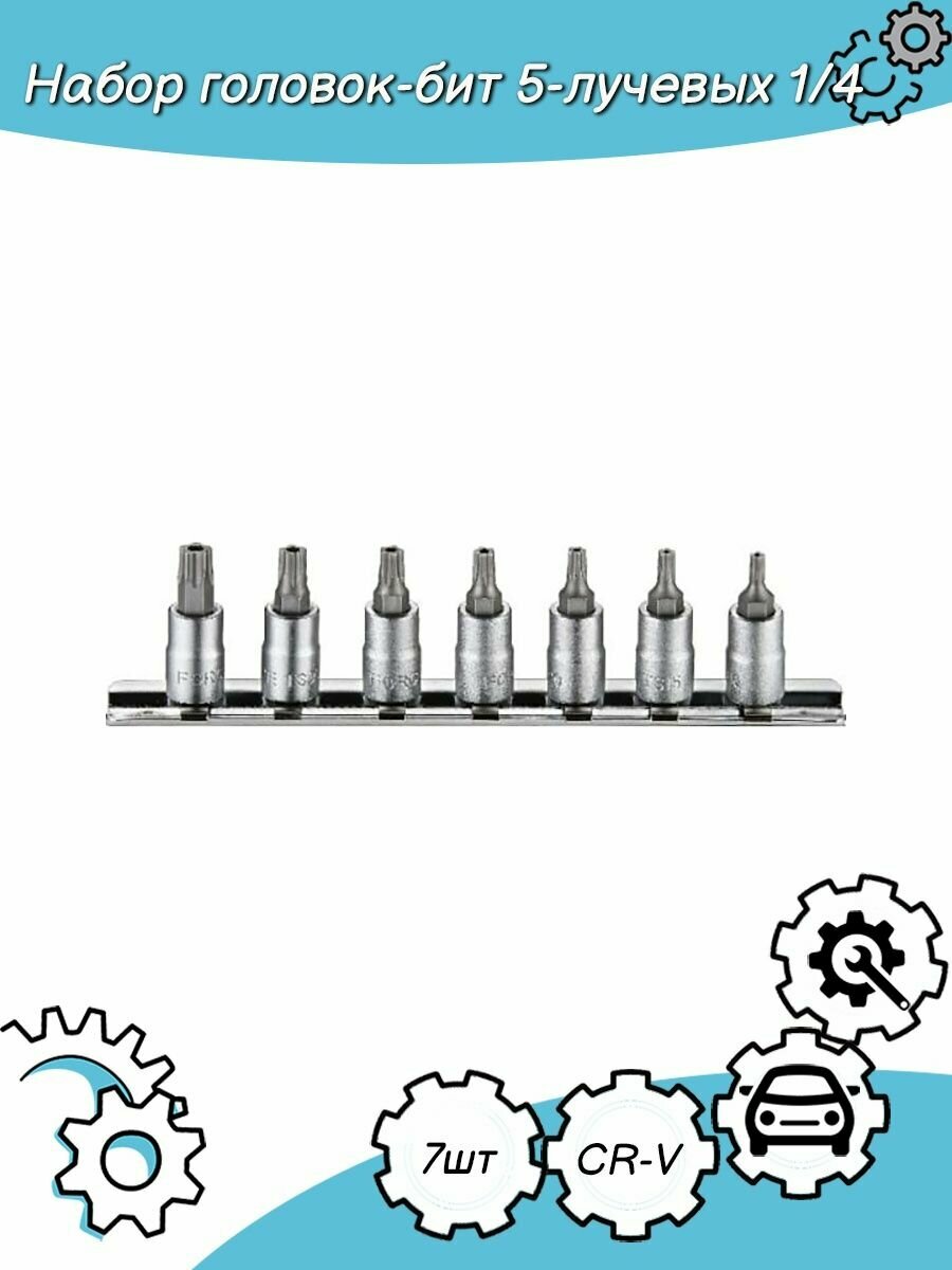 Набор головок-бит 5-лучевых 1/4 TS10-TS40 на планке информация: