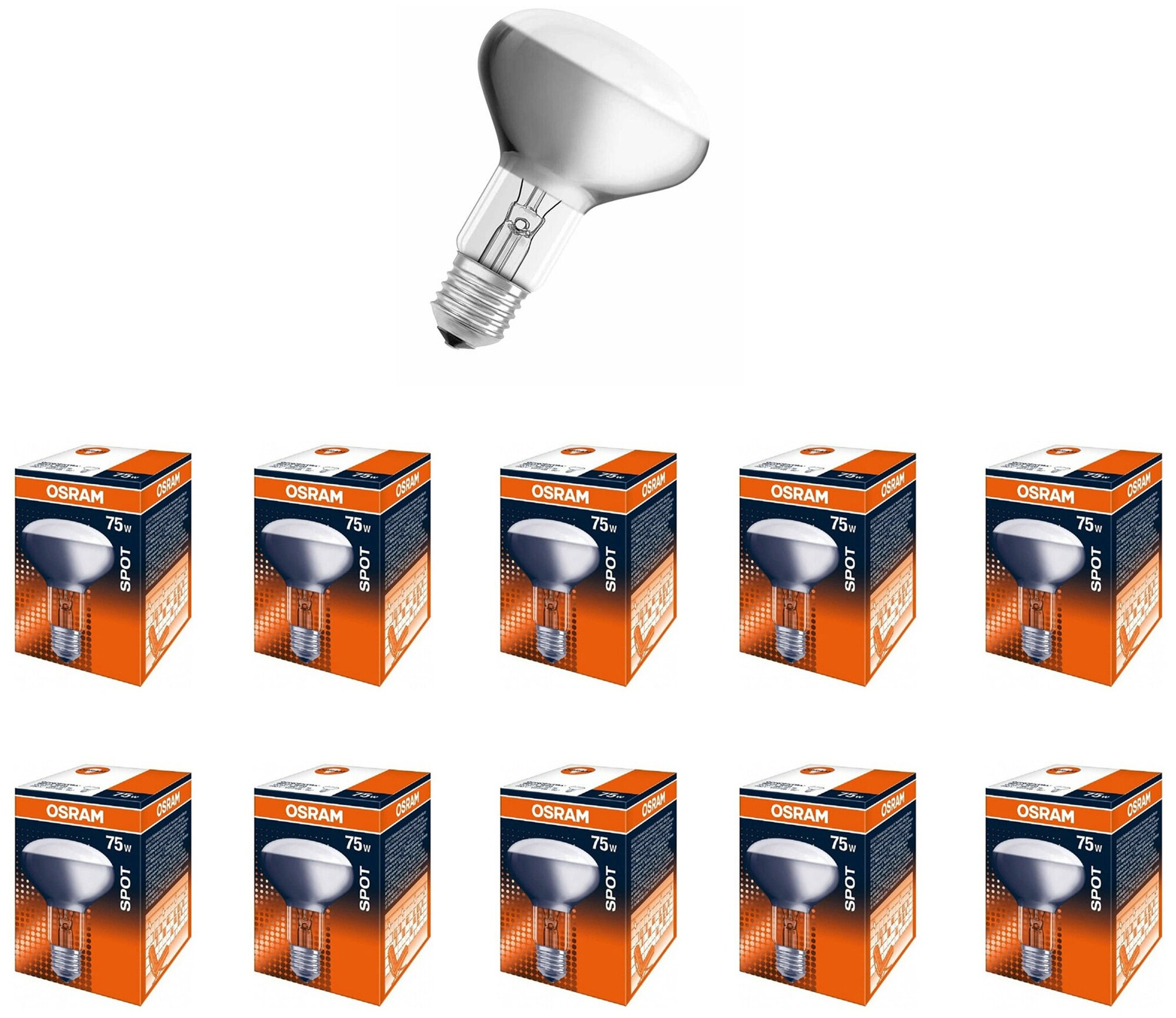 Лампочка накаливания OSRAM Рефлектор Гриб R80 E27 75Вт 220В 2700К Теплый белый Диммируемая, упаковка 10шт