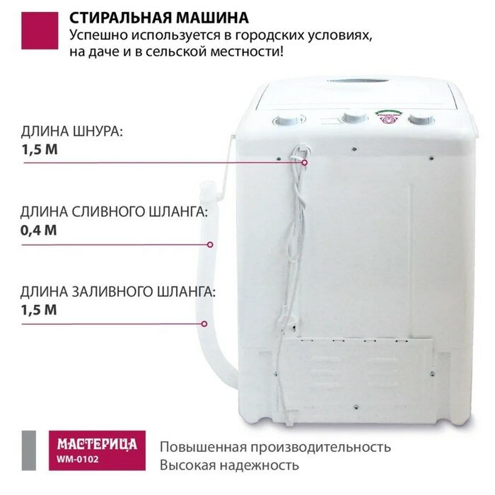 Мастерица Стиральная машина Мастерица WM-0102, 175 Вт, V=23 л, загрузка белья 2 кг, цвет бака синий информация: