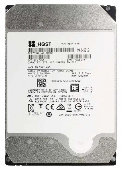 Жесткий диск HGST HUH721010AL5204 10Tb 7200 SAS 3,5" HDD информация: