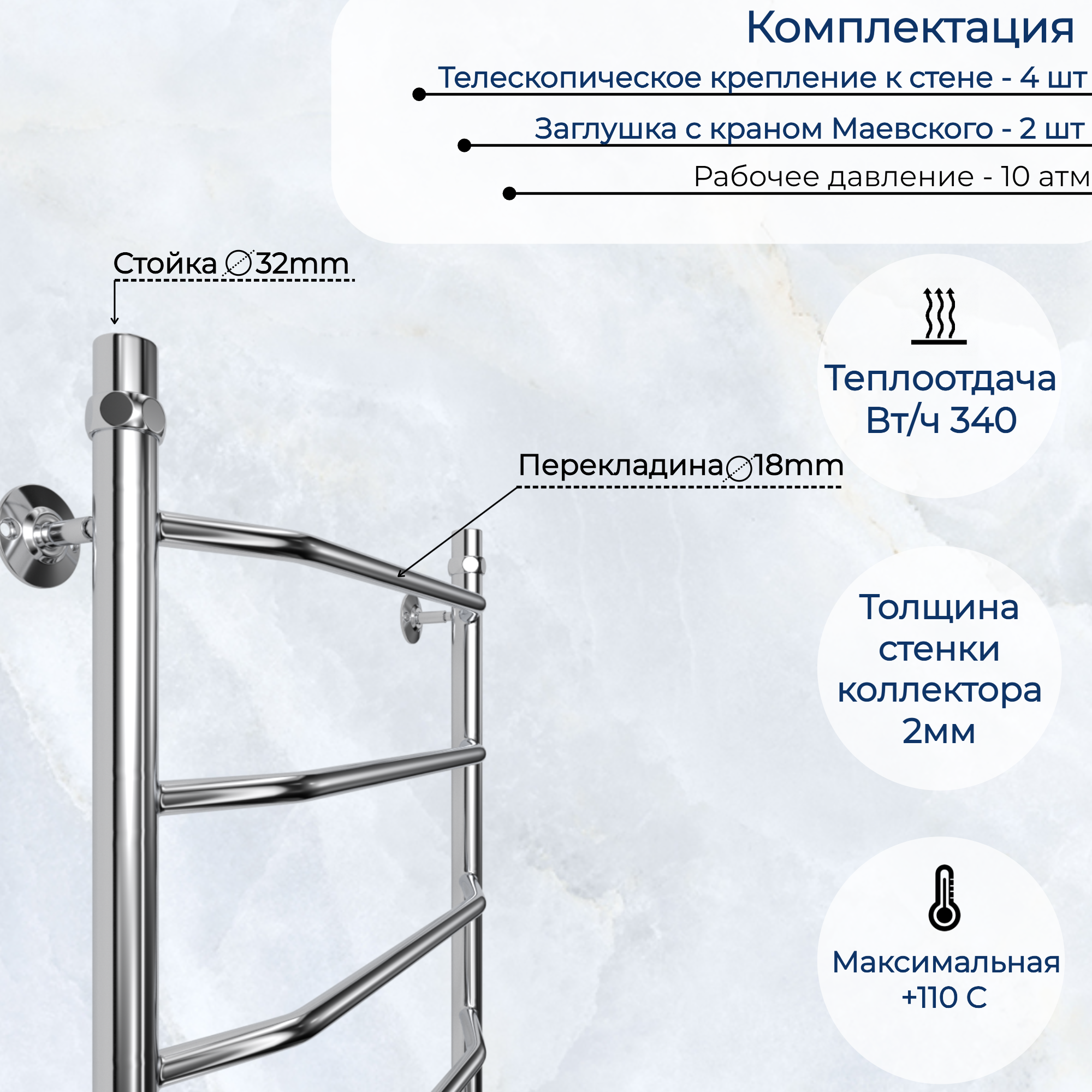 Водяной полотенцесушитель из нержавеющей стали "юрма" модель "E" 100/40см форма лесенка информация: