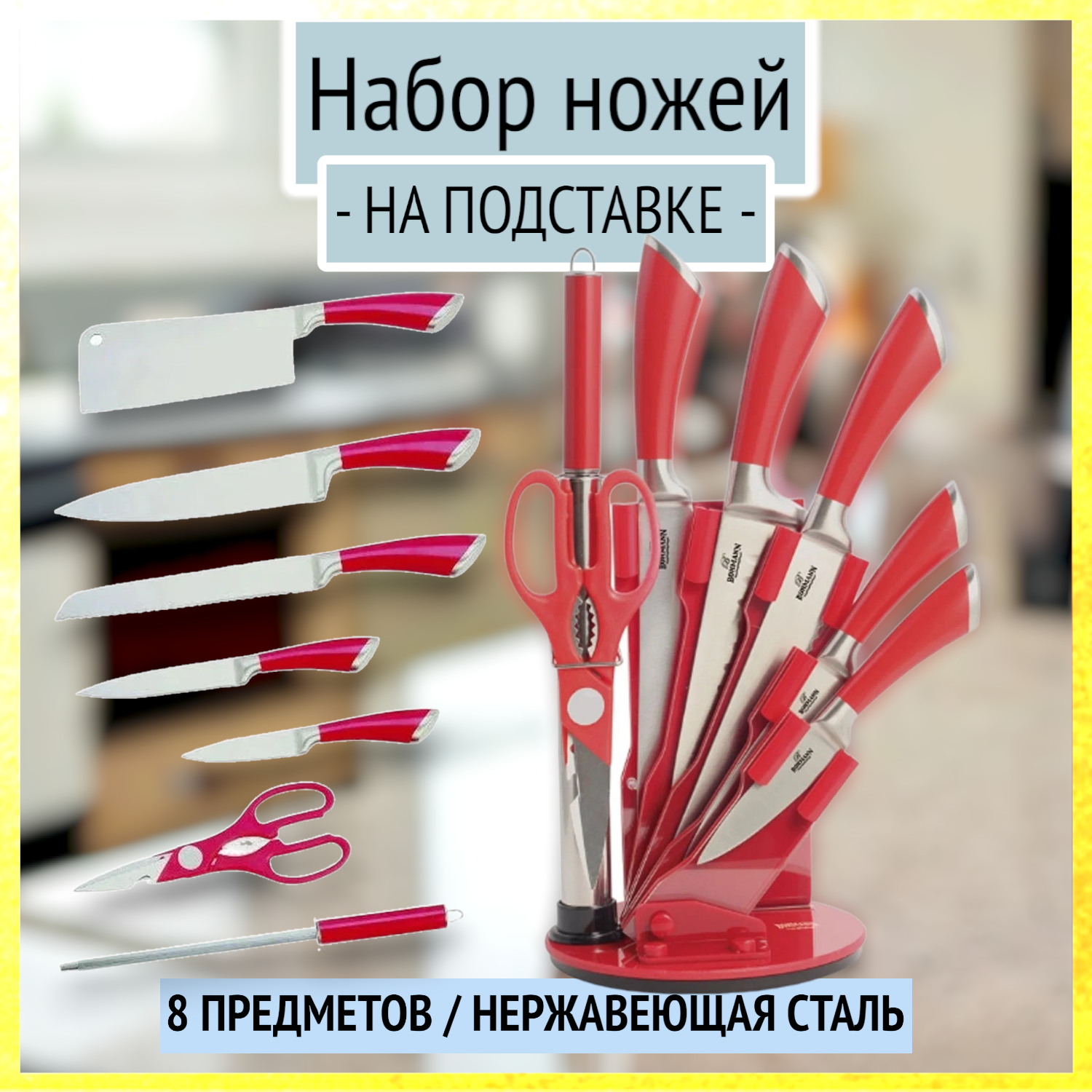 Набор ножей для кухни на подставке Bohmann из 8 предметов, BH-5275 информация: