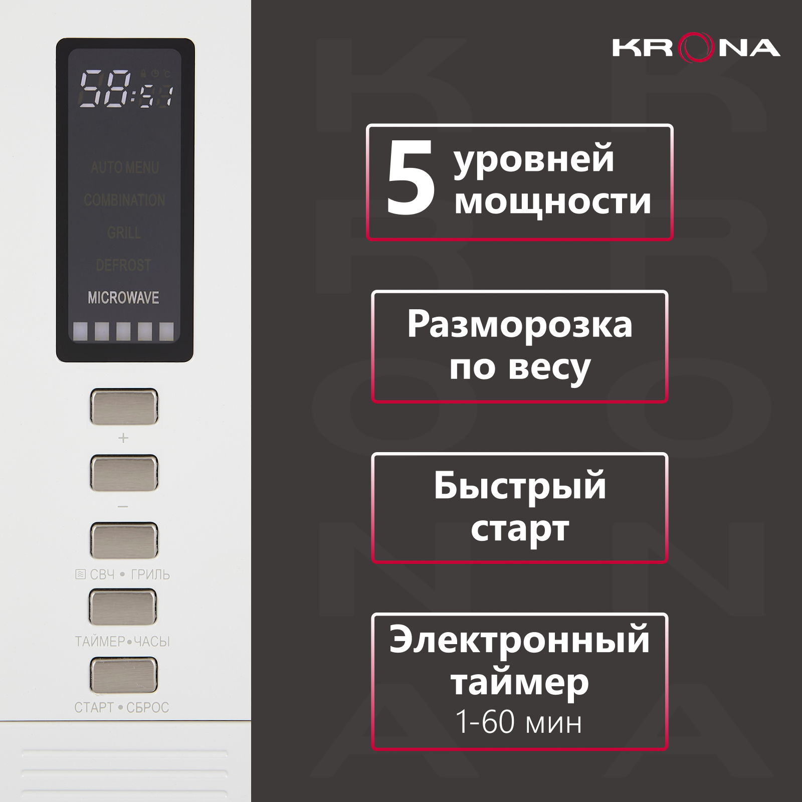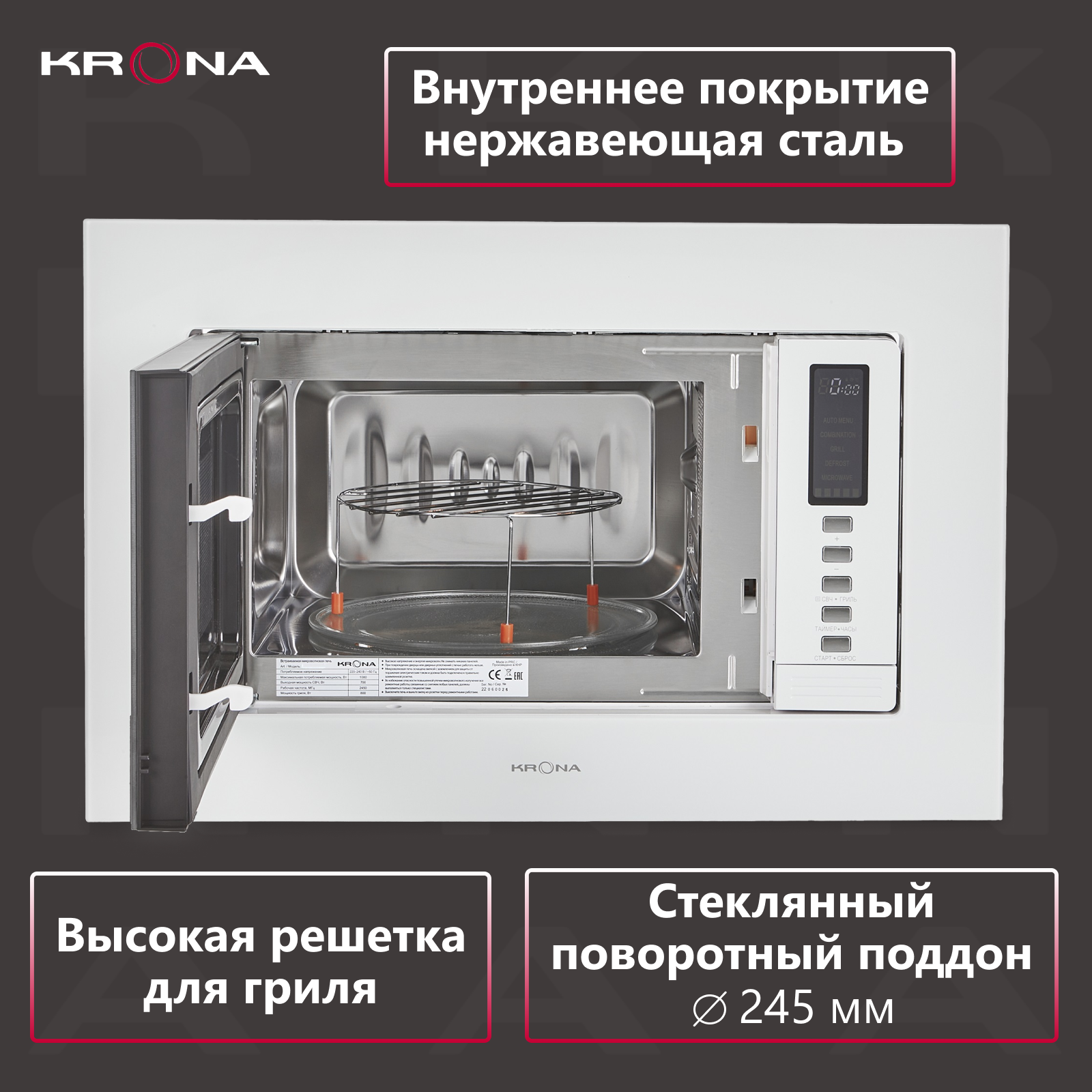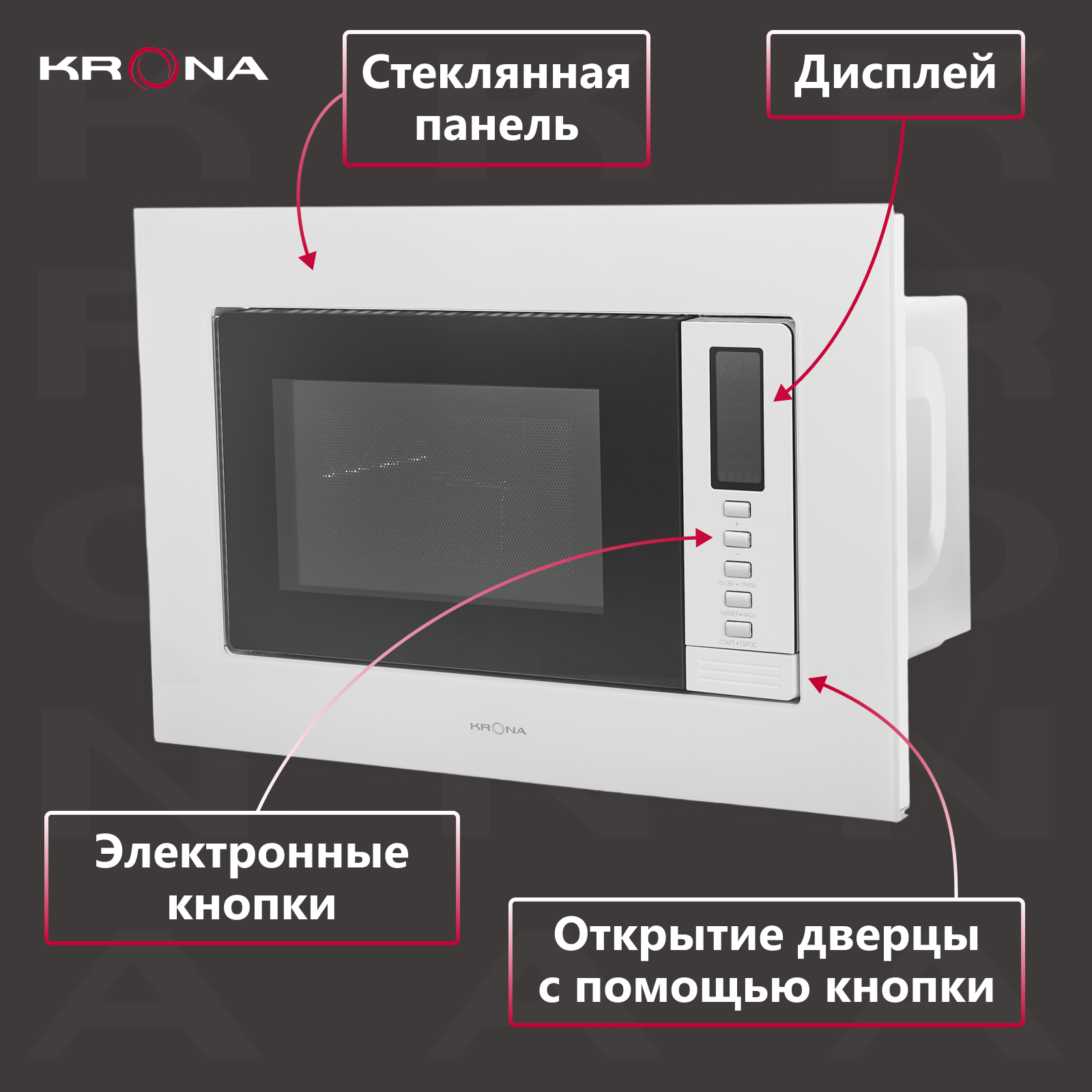 Встраиваемая микроволновая печь KRONA RAUM 60 WH DOTS