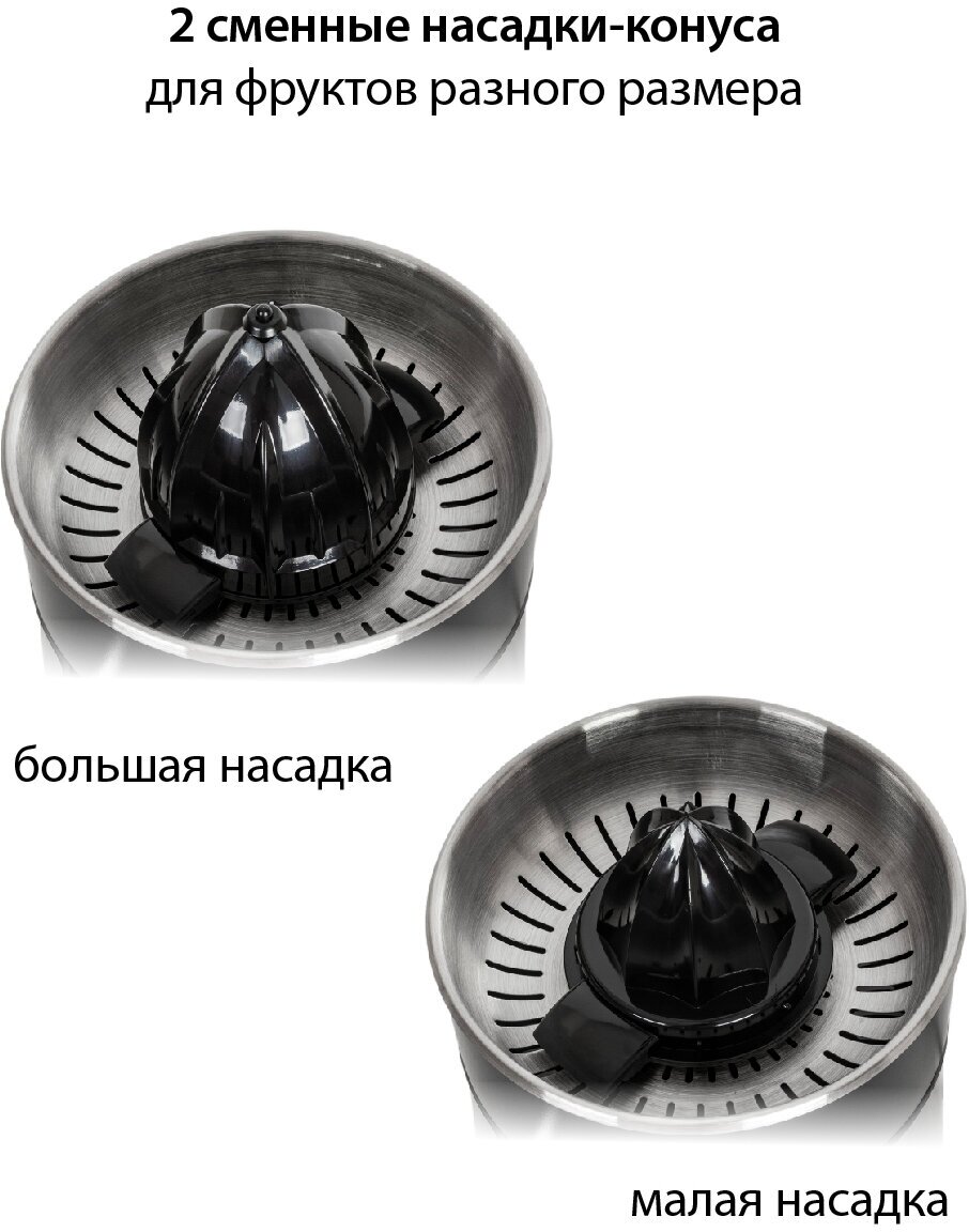Соковыжималка для цитрусовых Pioneer JC2080 с автовращением конуса, 2 насадки, фильтр из нержавеющей стали, носик с защитой от капель, 85 Вт информация: