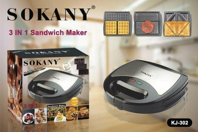 Сэндвичница, вафельница, тостер, мультипекарь 3 в 1 Sokany, Черный информация: