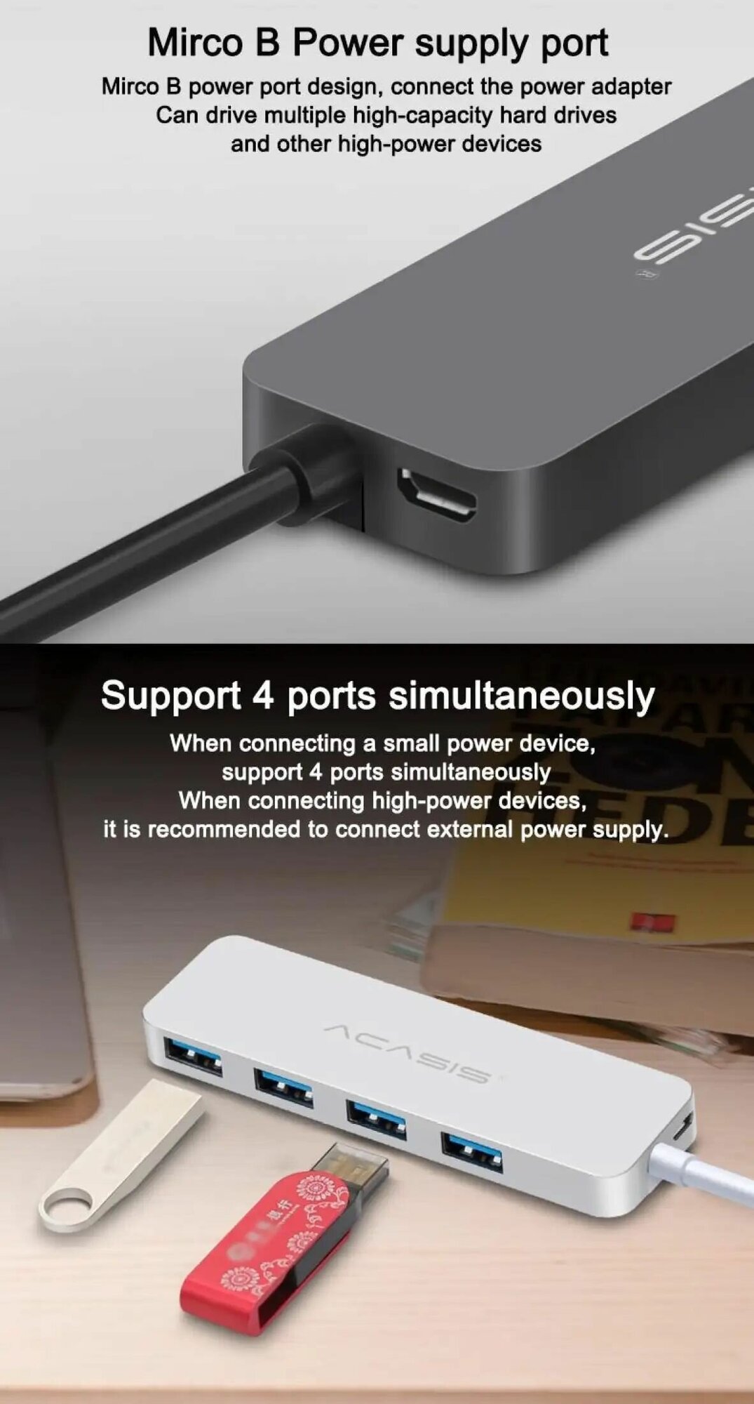 Отзывы на Хаб USB Acasis HS-080S на 4 порта USB 3.0 с кнопками выключения, 120 см - Серый