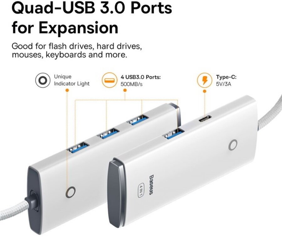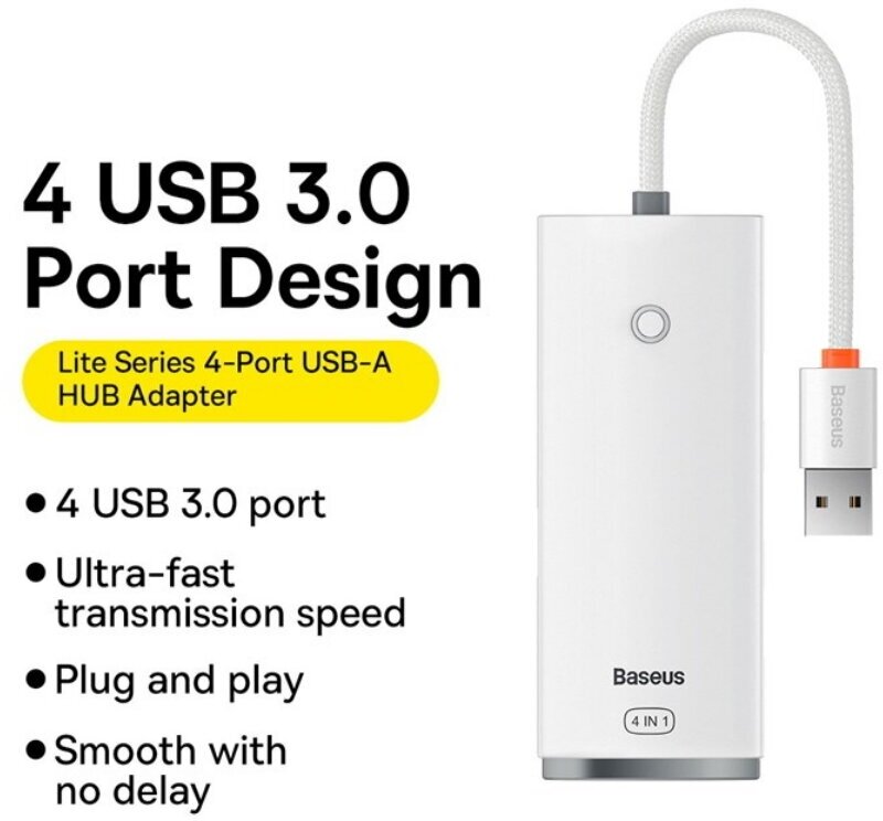 Отзывы на Концентратор серии Baseus Lite 4-портовый (от USB-A до 4xUSB-A 3.0) 0,25м Белый WKQX030002