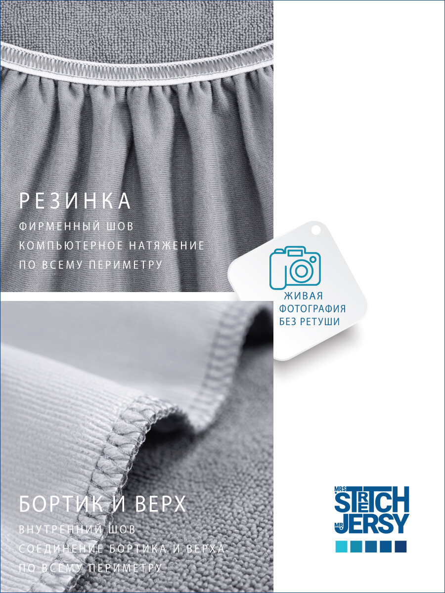 Наматрасник непромокаемый Stretch Jersy водонепроницаемый, 180 х 200 х 25см, серый 1 390 ₽