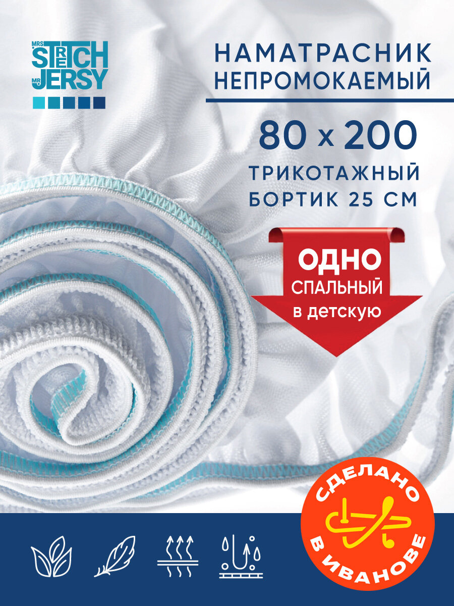 Наматрасник непромокаемый Stretch Jersy 80х200 см на резинке по периметру трикотажный бортик информация: