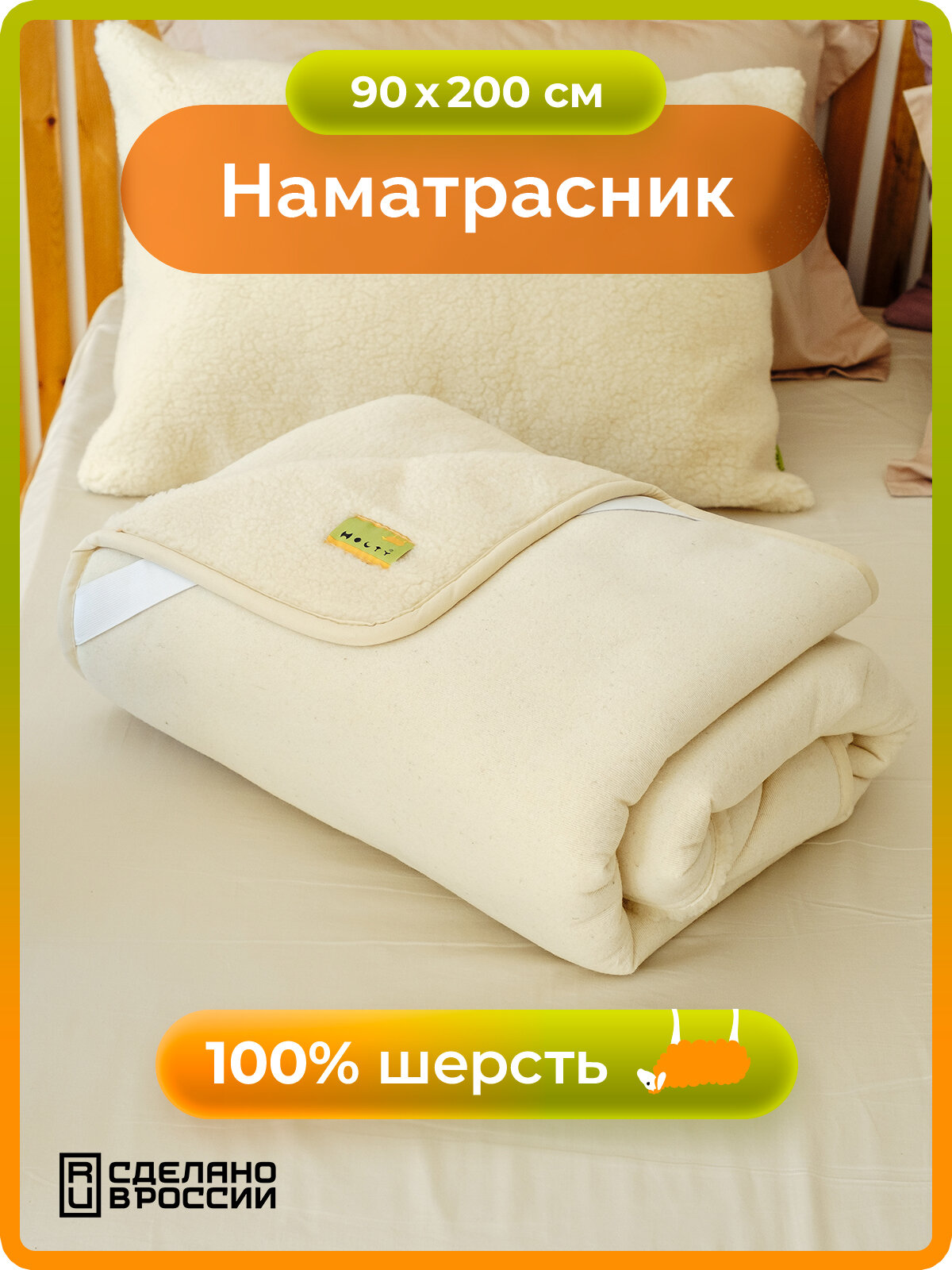 Наматрасник из овечьей шерсти холти 90х200, белый информация: