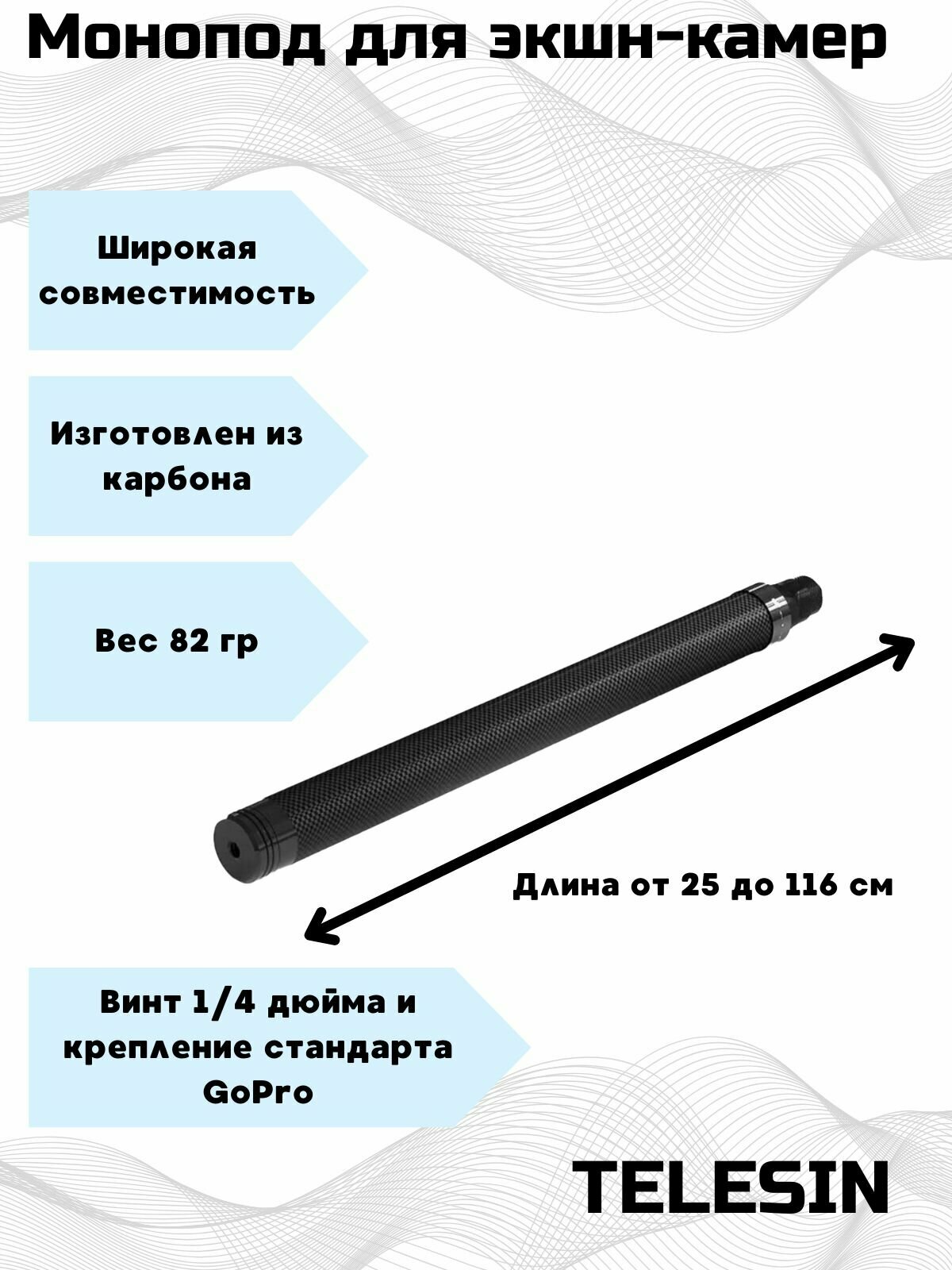 Карбоновый монопод селфи-палка Telesin (25-116см) информация: