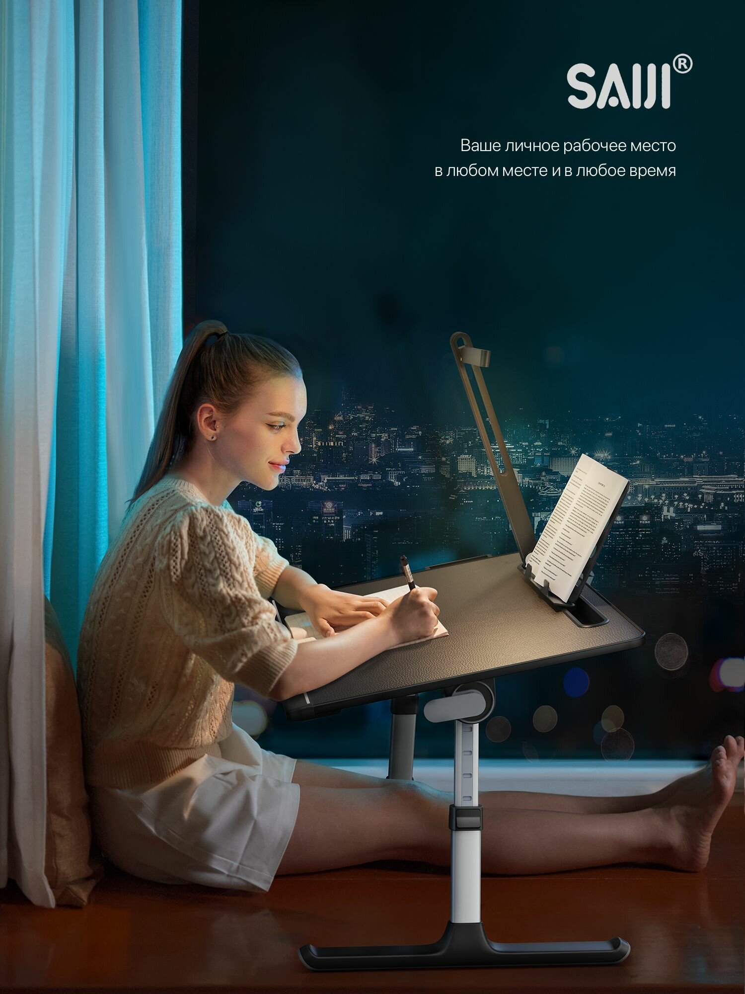 Отзывы на Столик для ноутбука в кровать складной с беспроводной лампой, черный, МДФ, SAIJI Ultra 8