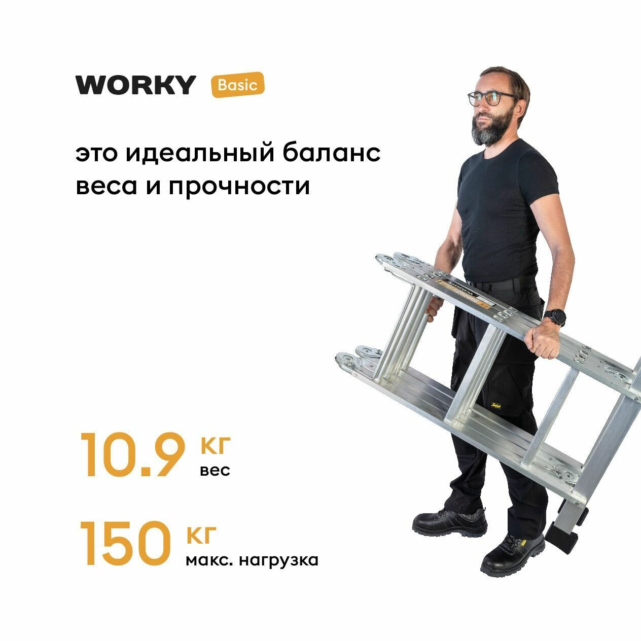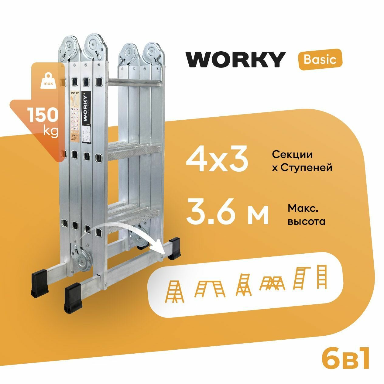 Характиристики этого товара не найдены!Отзывы на Лестница-стремянка 4x3 трансформер WORKY Basic, с увеличенной высотой 3,7м