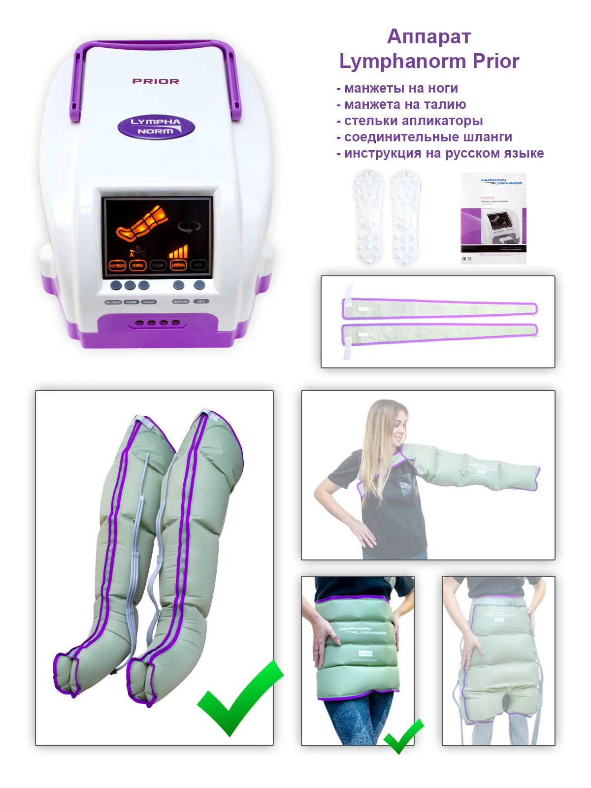 Массажер для лимфодренажа и прессотерапии LymphaNorm PRIOR (размер L) + манжета-шорты+ манжета-талия (XL) информация: