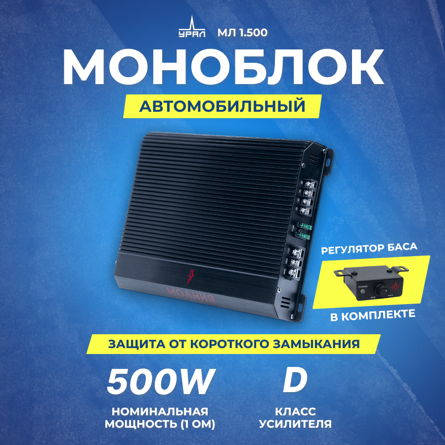 Автомобильный усилитель 1 канал урал молния МЛ 1.500
