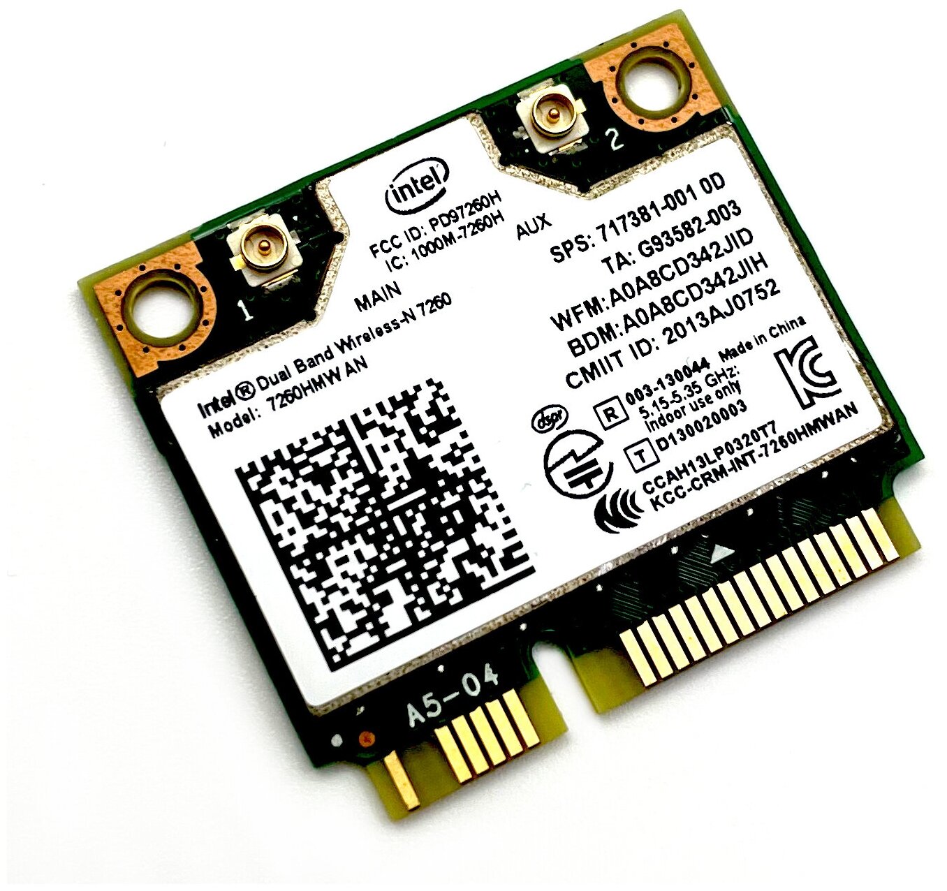 Характиристики этого товара не найдены!Отзывы на Адаптер WiFi Intel Dual Band Wireless-N 7260 (Mini PCI-E half-size, B/G/N, 300 Mbit/s, 2.4/5 Ghz) 7260HMW NB