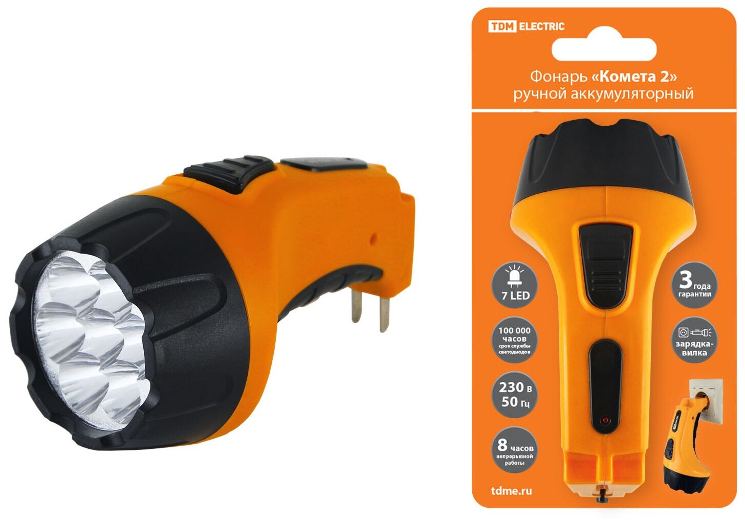 Фонарь «Комета 2» ручной аккумуляторный, 7 светодиодов, 0,8Ач 230В вилка, TDM SQ0350-0040 (1 шт.) информация:
