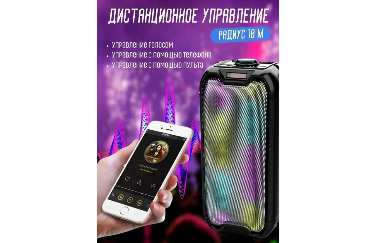Беспроводная акустическая система ZQS 6212 - Колонка с микрофоном / Портативная колонка с Bluetooth / Караоке станция / Динамик большой / Светомузыка 3 103 ₽