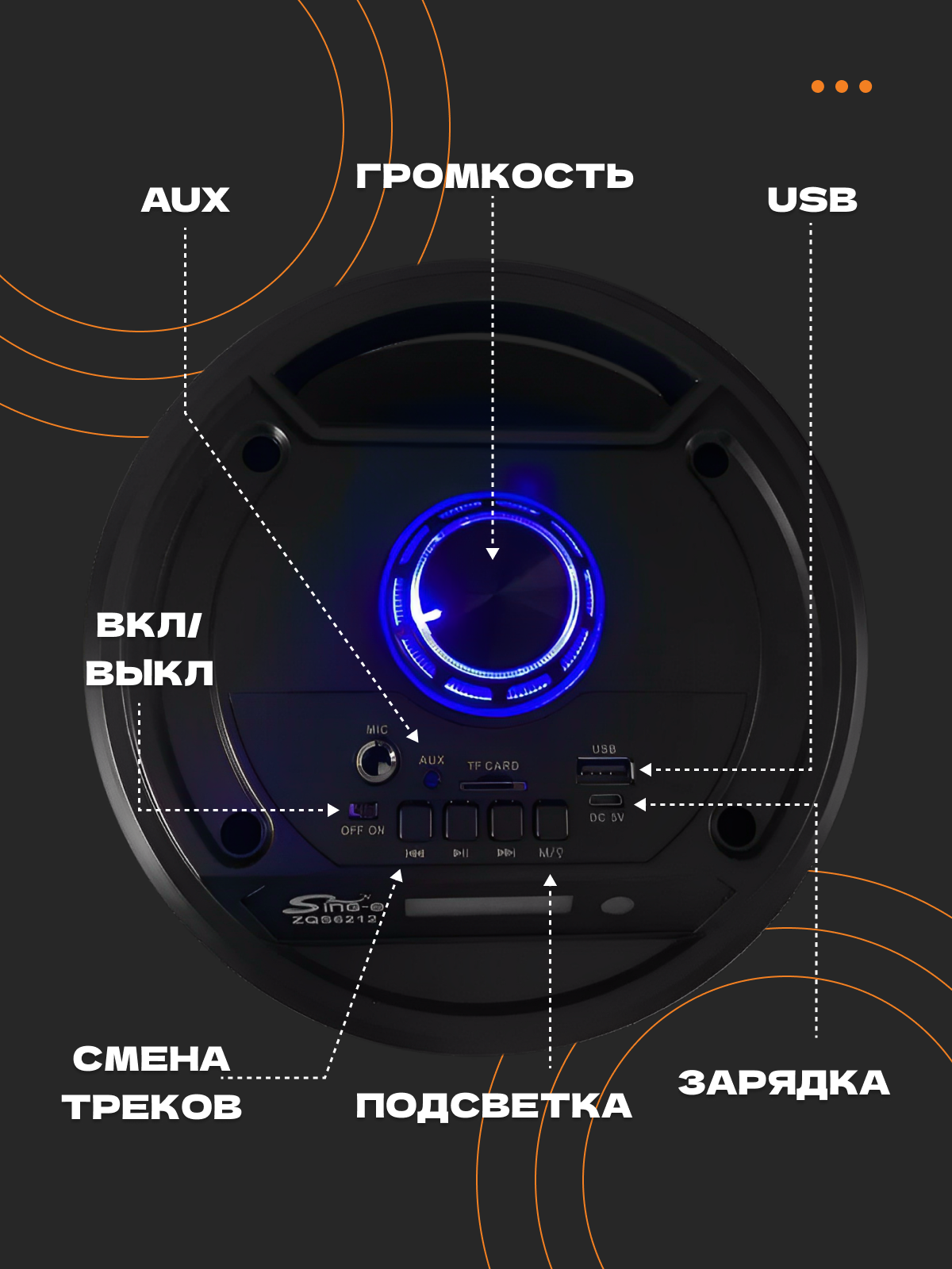 Беспроводная акустическая система ZQS 6212 - Колонка с микрофоном / Портативная колонка с Bluetooth / Караоке станция / Динамик большой / Светомузыка информация: