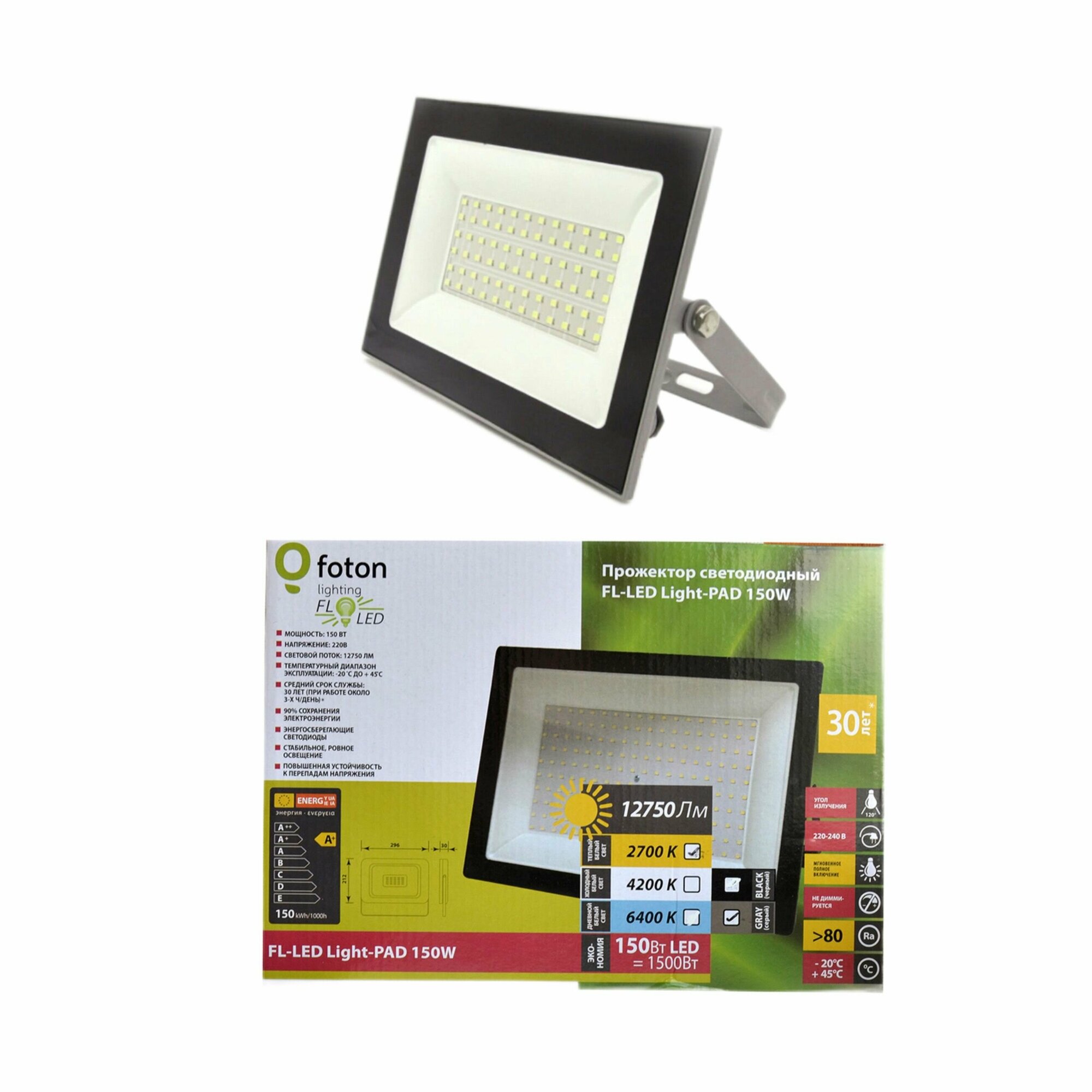 Прожектор светодиодный FL-LED Light-PAD 150W Grey 4200К 12750Лм 150Вт AC220-240В 290x210x30мм FOTON информация: