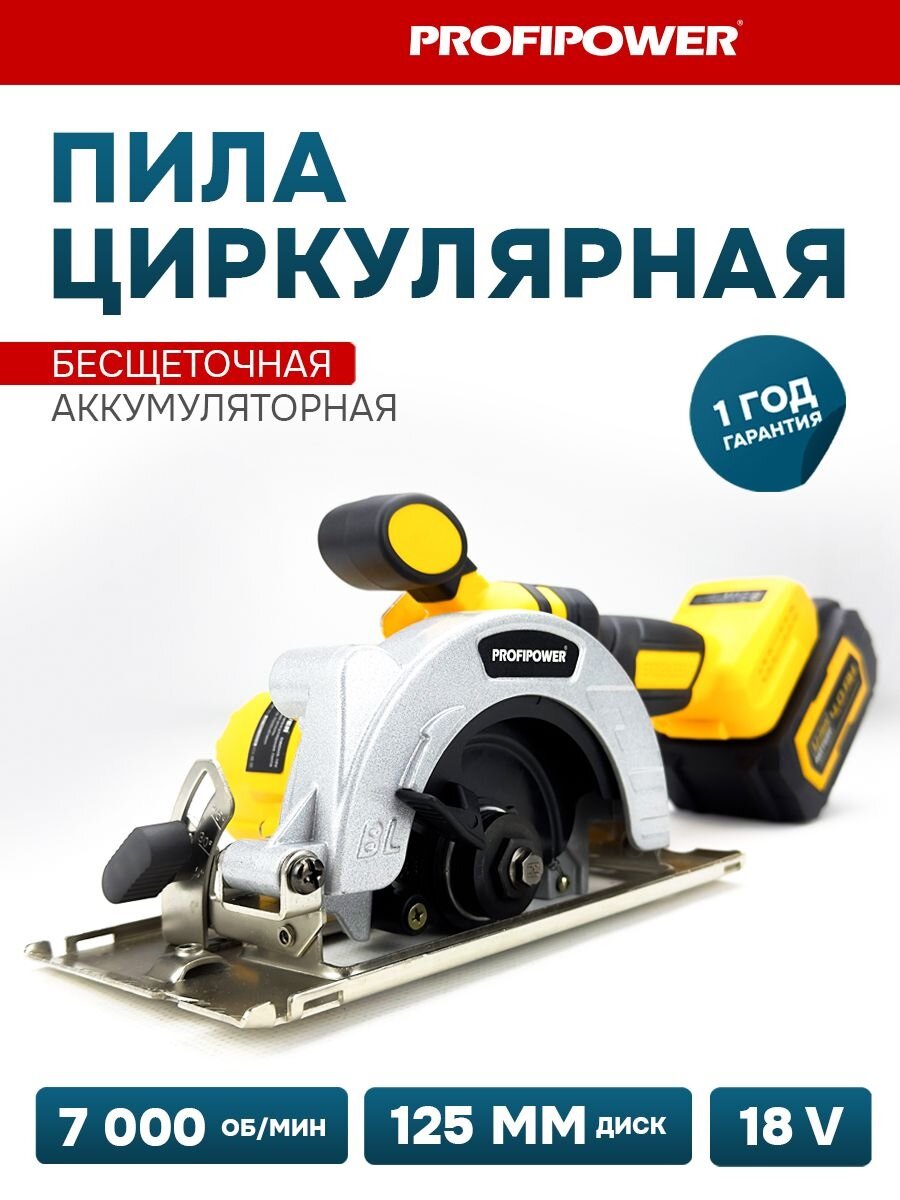 Аккумуляторная пила циркулярная бесщеточная ProfiPower DHS-18V (Li-ion-1шт, 4.0Ач,125мм, 0-7000об/мин, З/У, в коробке)
