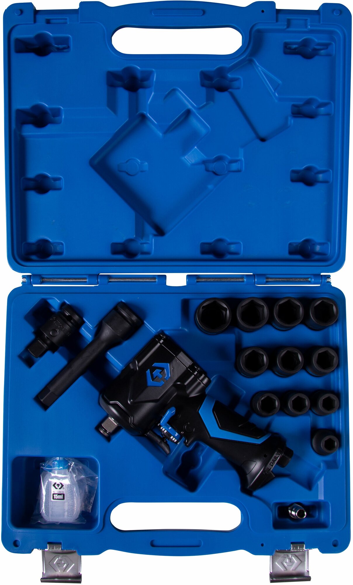 10 цен на KING TONY Гайковерт пневматический ударный 1/2", 678 Нм, с комплектом головок, 16 предметов