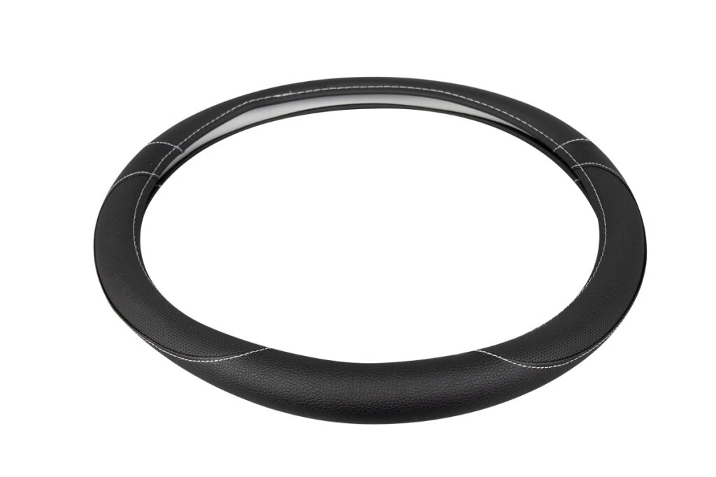 Оплетка Рулевого Колеса Эко-Кожа Гладкая С Перфорированными Вставками. Черная/Белая Строчка. Диаметр 35-37 См. Размер S Kraft...