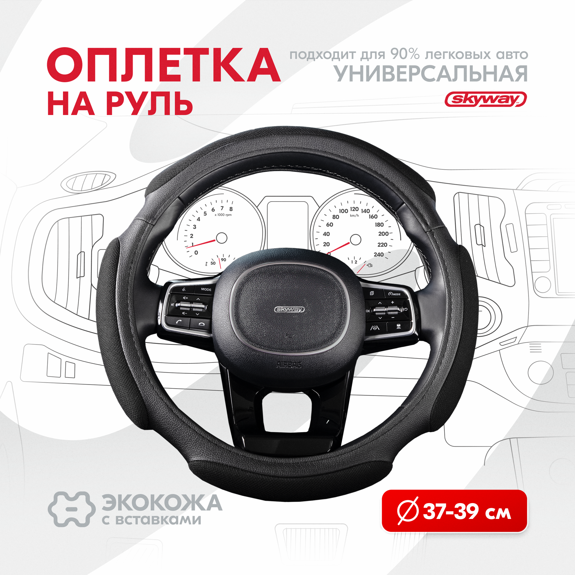 Оплетка на руль Top-12 SKYWAY M (37-39) серый экокожа, S01102501