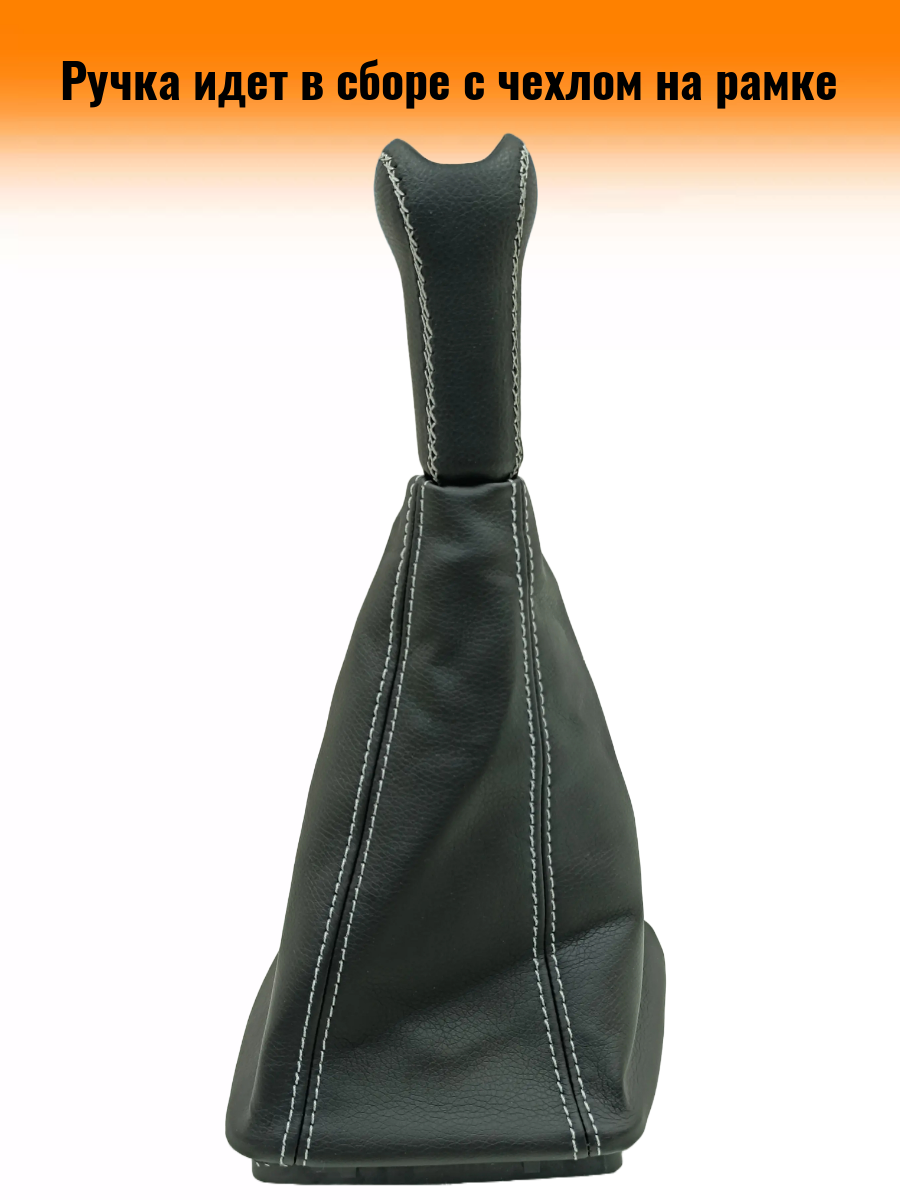 Ручка КПП с чехлом в стиле Весты на ВАЗ-2170 Лада Приора 1 (Lada Priora 1) с Приора кулисой, черный с серой строчкой "рамка лак" 2 300 ₽
